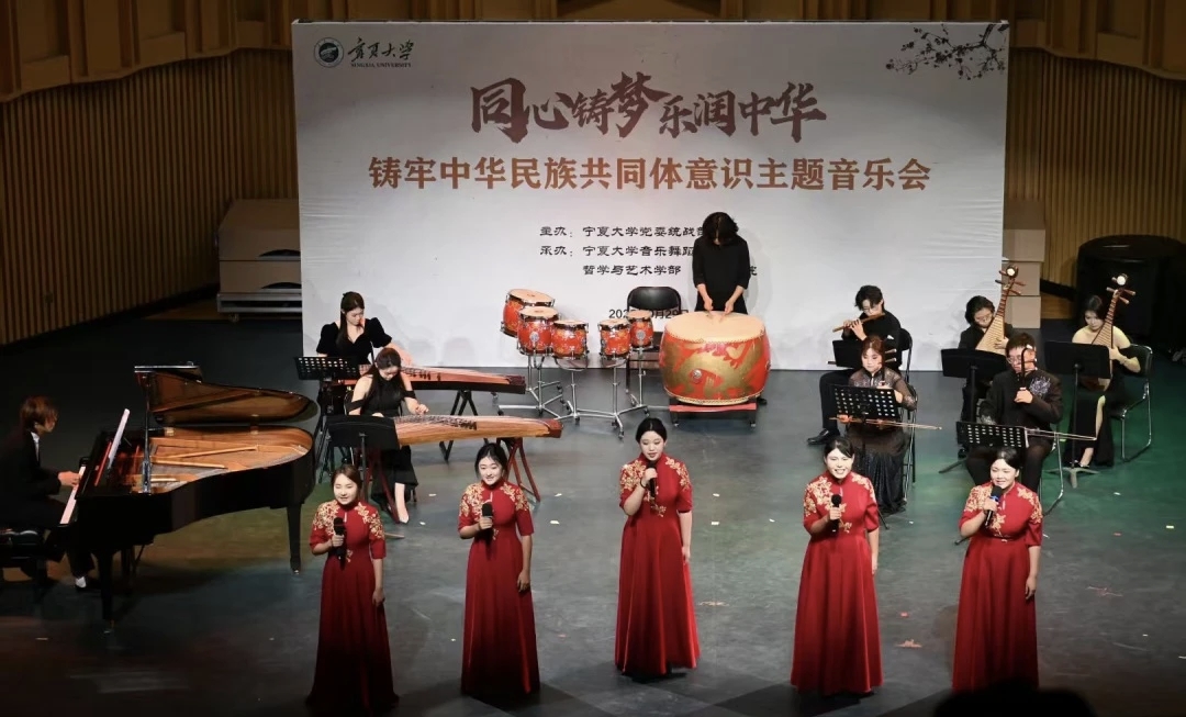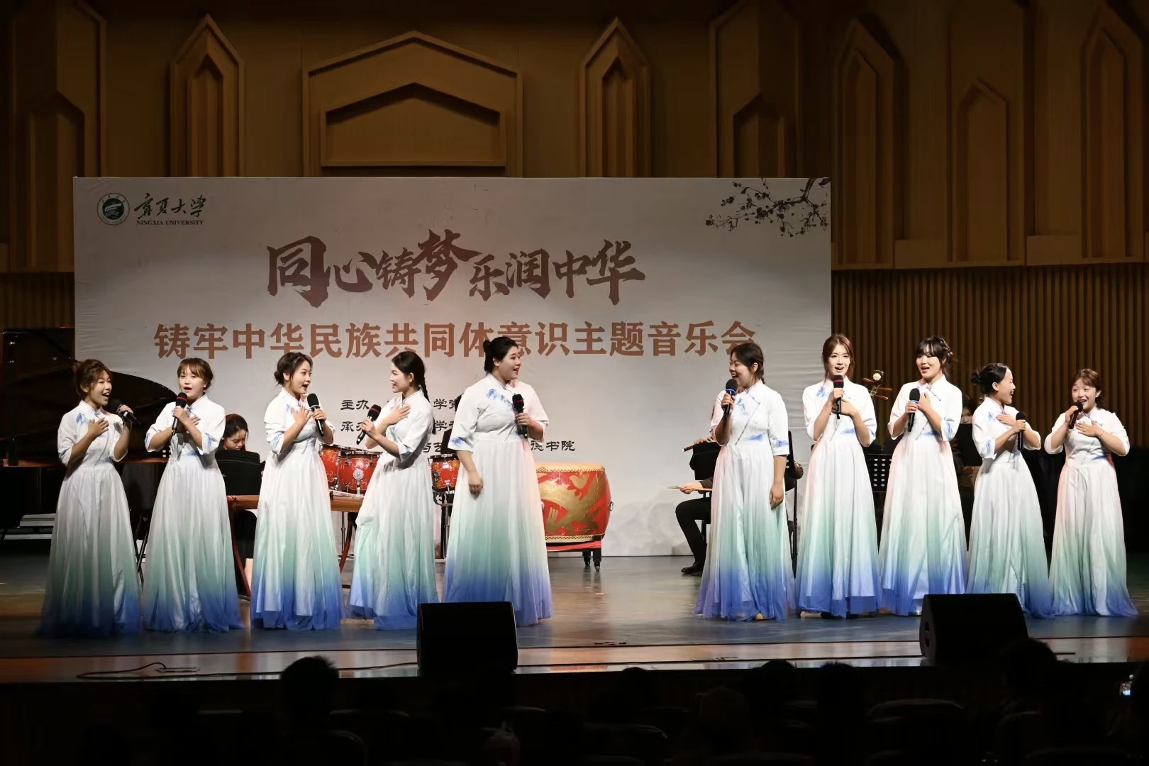 音乐会在全体演员与观众齐声高唱《爱我中华》的雄壮歌声中圆满落幕。整场演出以艺术为媒,深化了师生对中华民族共同体的认同与情感,充分展现了学校在相关教育工作中取得的扎实成效。面向未来,宁夏大学将继续创新载体与形式,引导全体师生牢固树立休戚与共、荣辱与共、生死与共、命运与共的共同体理念,为培养德智体美劳全面发展的社会主义建设者和接班人贡献更大力量。
