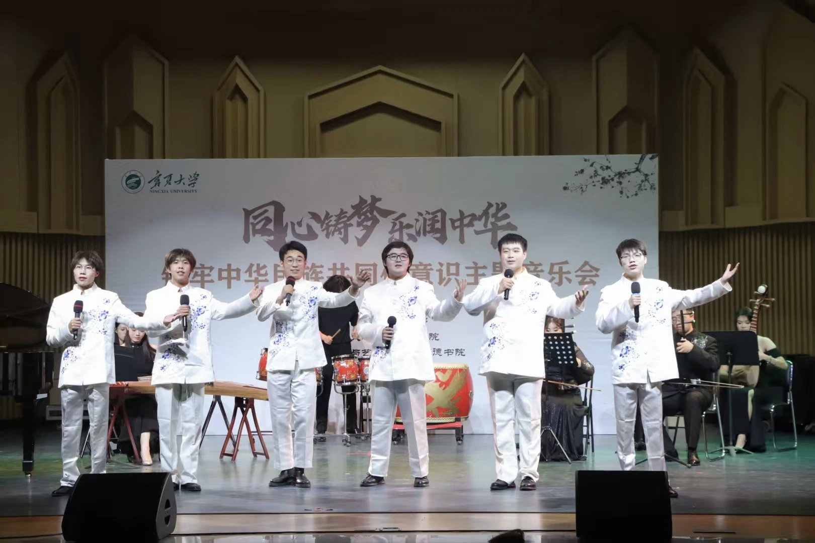 音乐会在一曲富有民族团结气息的民族器乐合奏中拉开帷幕。上半场"华夏国风,丝竹和鸣"集中展示了我国各民族丰富多彩的音乐文化。从西南地区的《太阳出来喜洋洋》到江南水乡的《茉莉花》,从湘西民歌《马桑树儿搭灯台》到山西民歌《走西口》,同学们用真挚的演绎展现了中华民族"五个共同"的深刻内涵——我国各民族共同开拓了辽阔疆域,共同缔造了多民族国家,共同书写了悠久历史,共同创造了灿烂文化,共同培育了伟大民族精神。