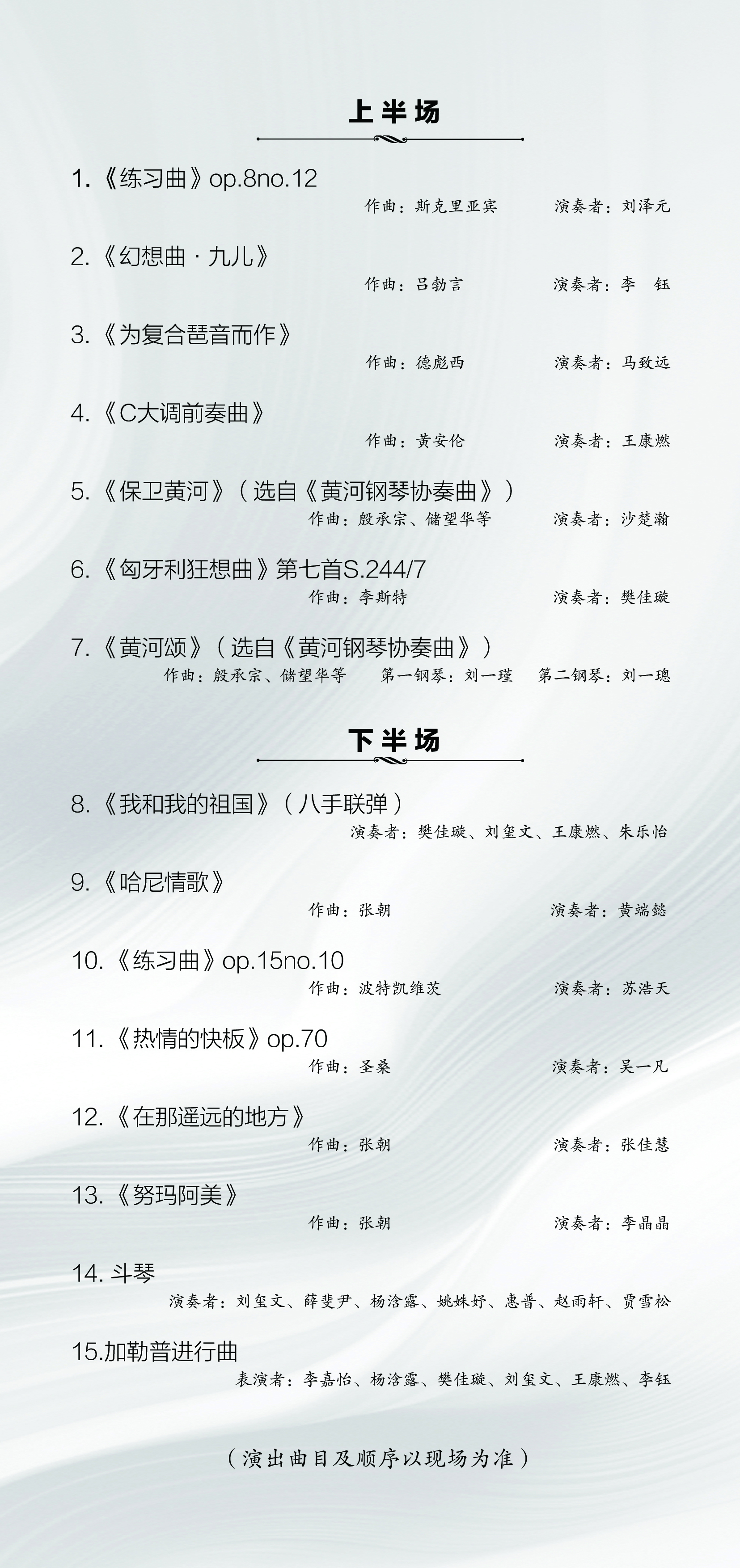 这是教学成果的集中展示,是师生情谊的深情诠释。胡菁华老师倾注心血,指导学生们在黑白键上舞动梦想;学生们以琴为媒,奏响青春的华彩乐章。因为有您,每一次努力都熠熠生辉;因为有您,这个舞台更加璀璨。