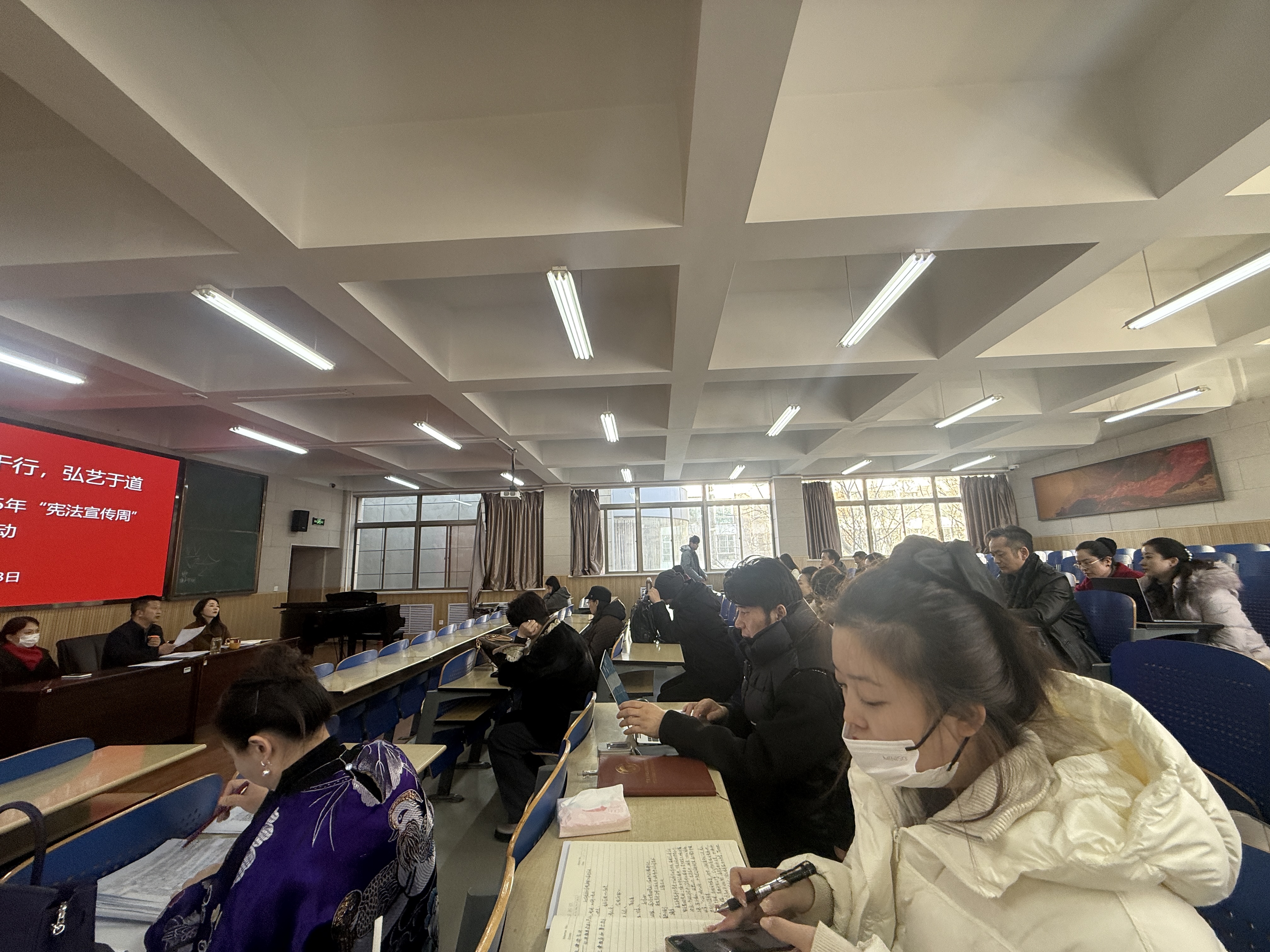 学院召开“宪法宣传周”专题教师大会,以“铭宪于心,守责于行,弘艺于道”为主题,将法治学习教育与师德师风建设紧密结合。会议引导全体教师深刻认识宪法的权威地位与实践要求,自觉成为社会主义法治的忠实崇尚者、自觉遵守者和坚定捍卫者。